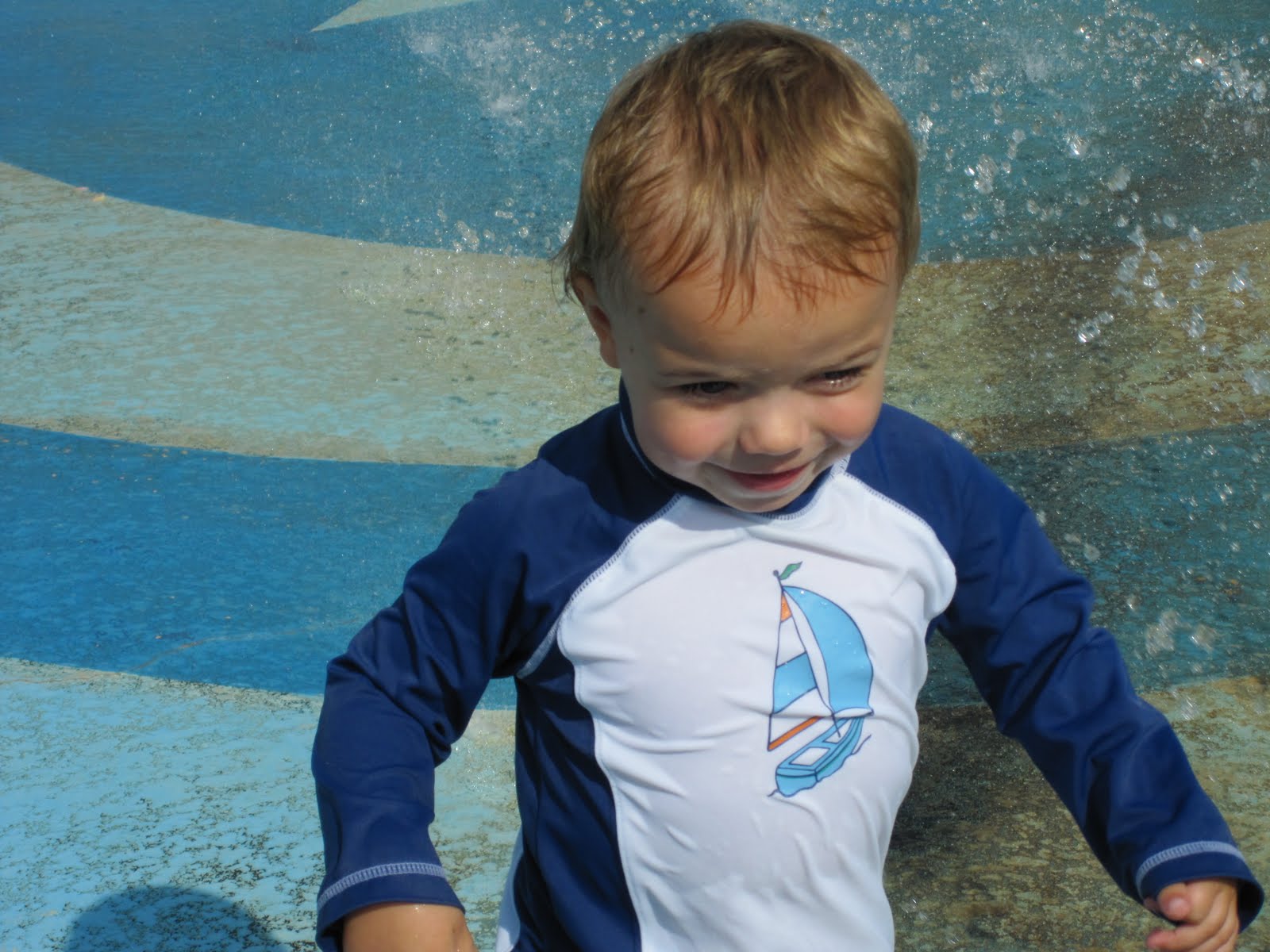 Nathan and Natalie LOVED the splash pad! They were all about playing in the water. Josie....not so much. You'll notice there's not a single picture of her in the water. She didn't get wet at all, and we didn't even need her towel. She walked around a little bit in the water, but mostly enjoyed walking on the dry concrete steps (or sitting right next to me!). She definitely did NOT want the water to spray her! Josie's favorite part of this field trip was definitely playing on the playground (the see-saw in particular) before we left.